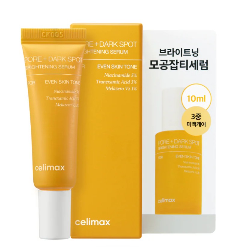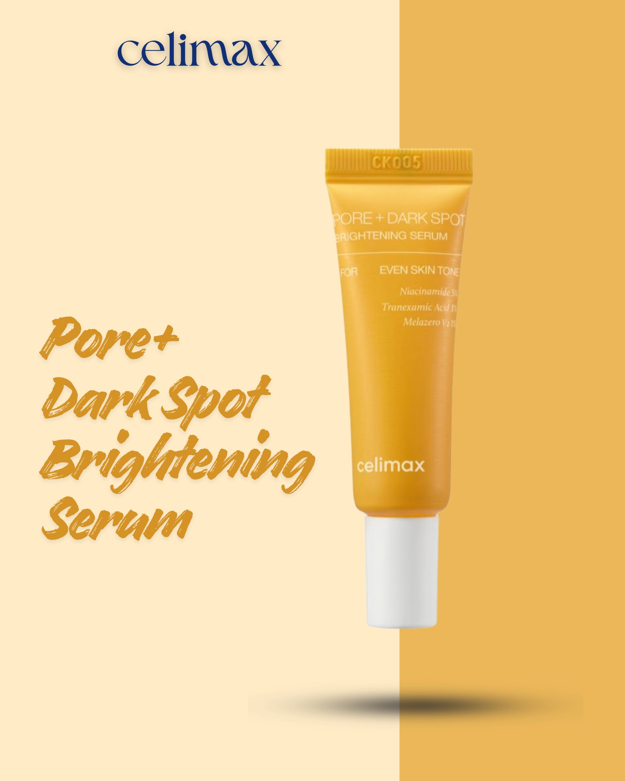 The Celimax Pore+ Dark Spot Brightening Serum is a concentrated, high-performance treatment designed to tackle the “Triple Blemish” cycle: preventing new spots, blocking melanin migration, and breaking down existing discoloration. This 10ML trial size is the perfect way to experience the serum’s powerful brightening and pore-refining effects before committing to a full-sized bottle, and it is travel-friendly for on-the-go skincare.