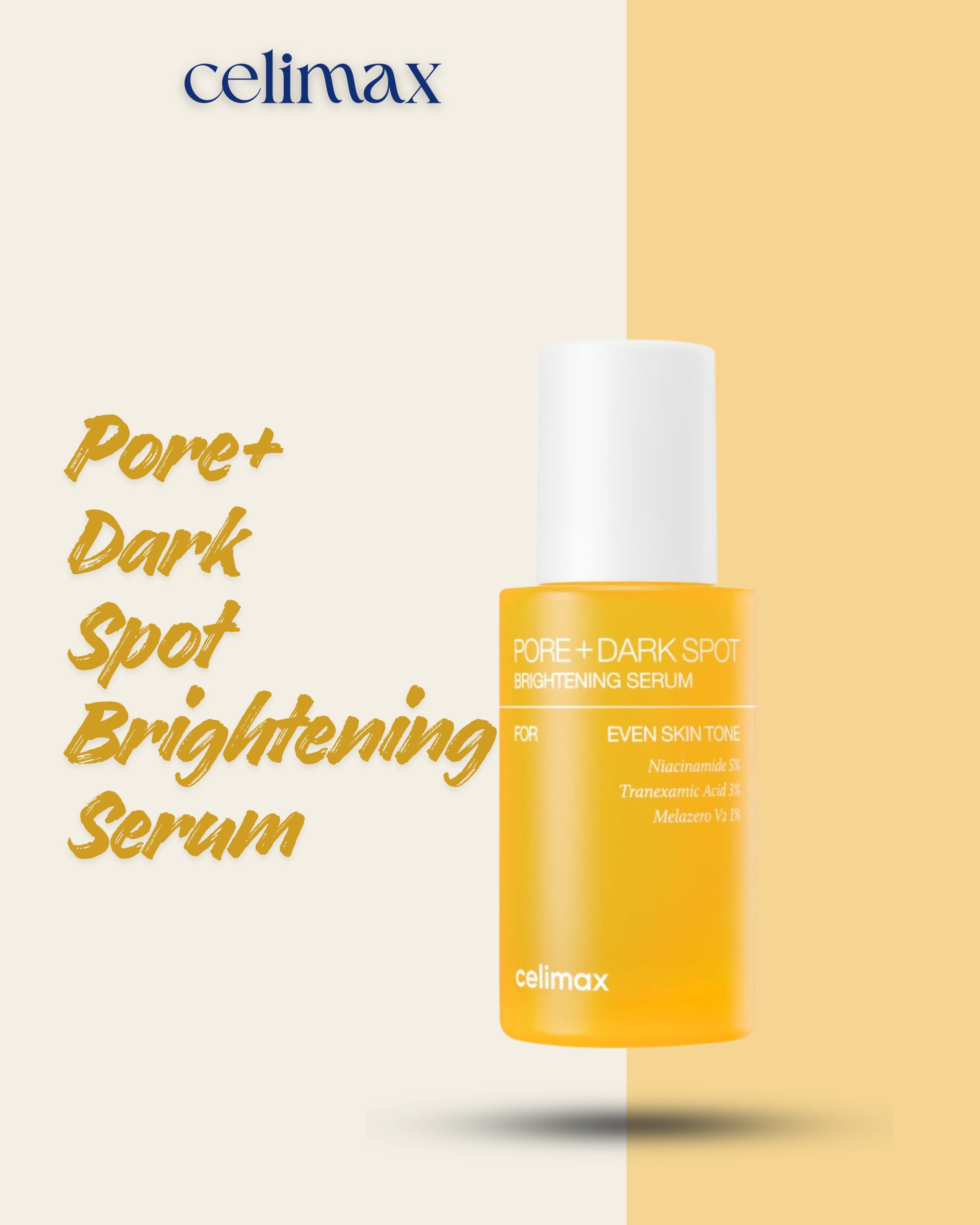 The Celimax Pore+ Dark Spot Brightening Serum is a targeted “Triple Blemish Care” treatment designed to achieve a clear, porcelain-like complexion. It specifically addresses the cycle of melanin production—blocking, preventing, and breaking down pigments—to fade stubborn dark spots while simultaneously refining the appearance of enlarged pores.