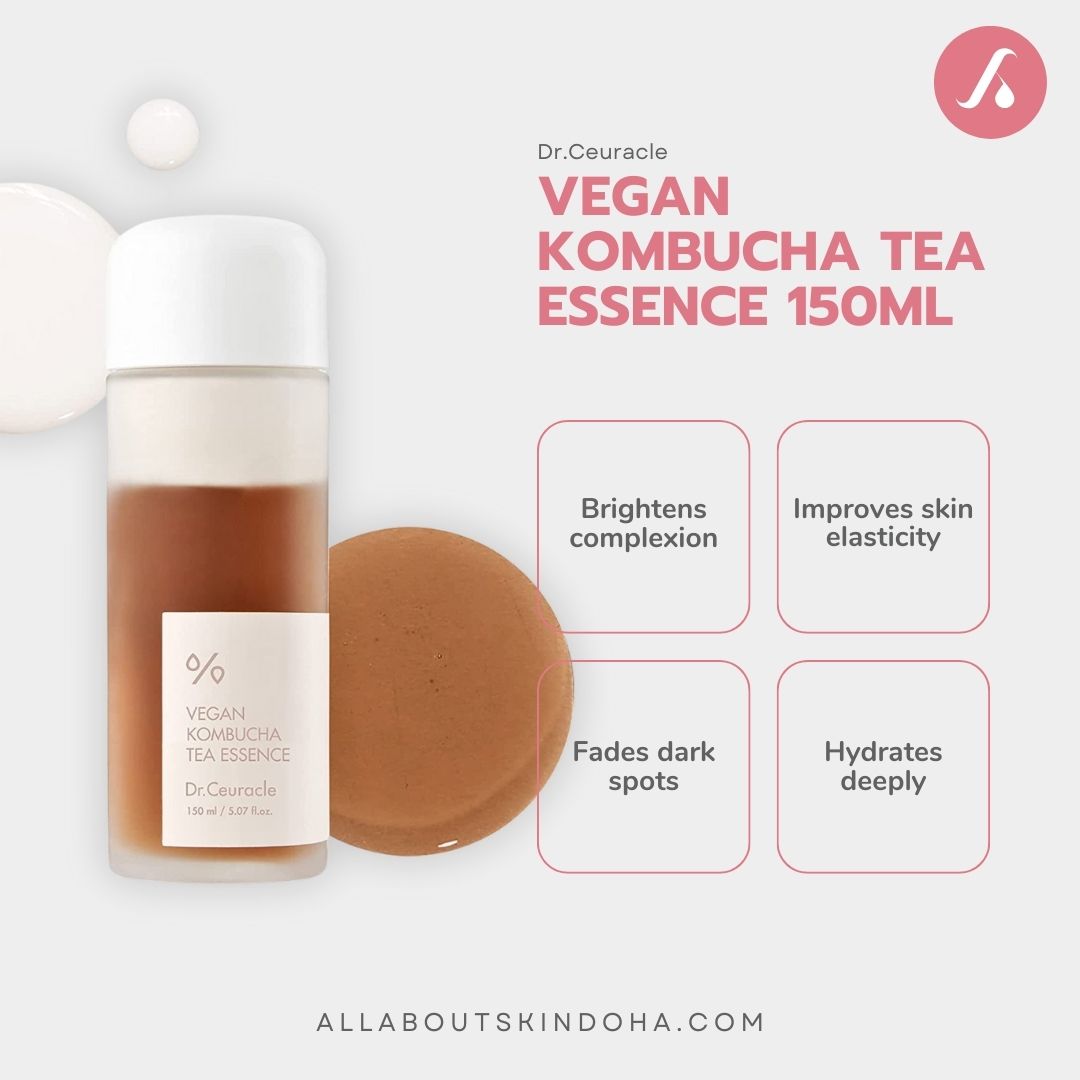 The Dr. Ceuracle Vegan Kombucha Tea Essence is a pioneering “Cream Essence” that has redefined the multi-tasking skincare category. This innovative formula features a unique bi-phase texture—a milky cream layer floating atop a refreshing tea-infused essence. When shaken, it creates a nutrient-dense treatment that acts as a toner, essence, and moisturizer all in one.