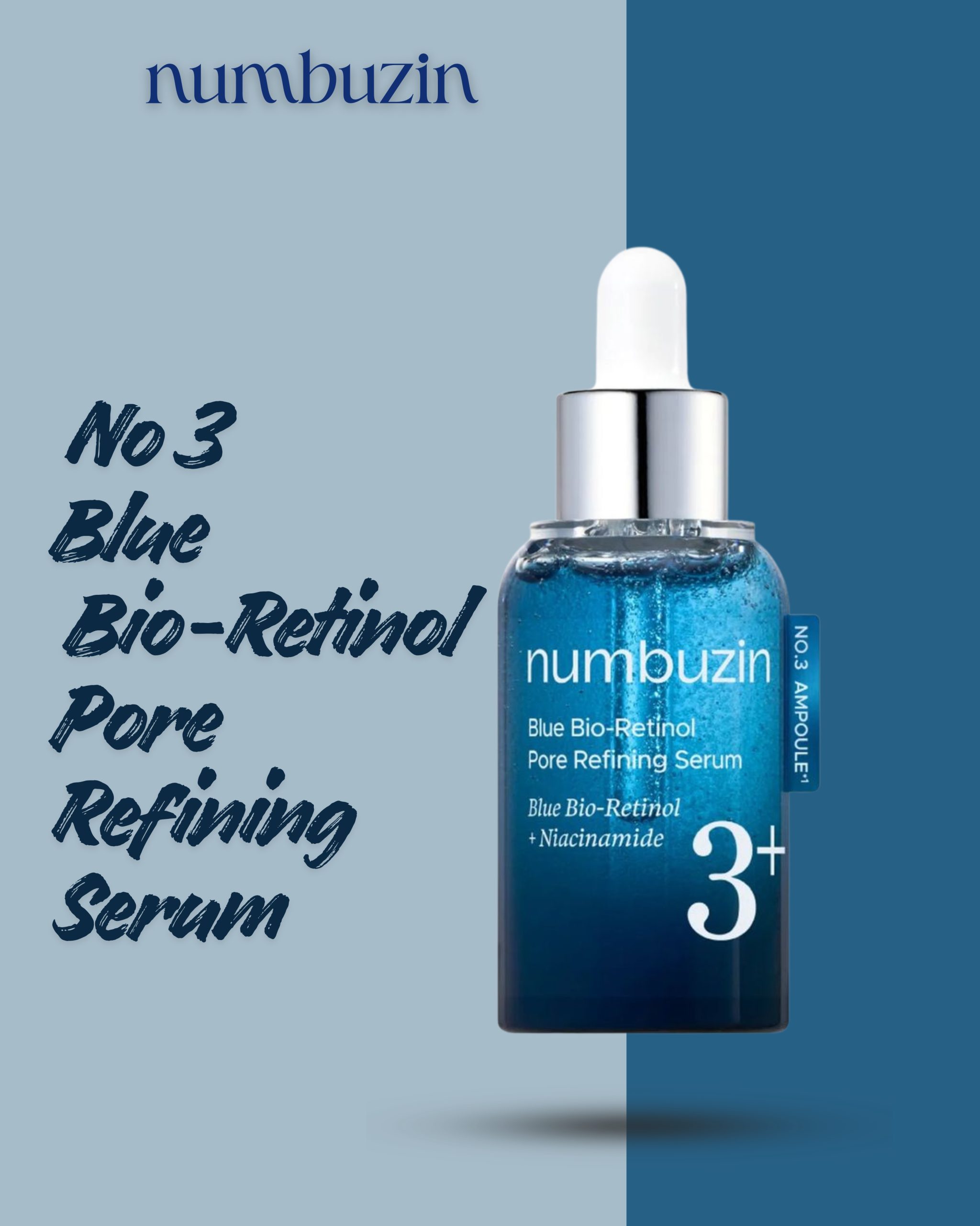 The Numbuzin No. 3 Blue Bio-Retinol Pore Refining Serum is a next-generation anti-aging and pore-correcting treatment. Unlike traditional retinol products that can be harsh, this “Blue” formula utilizes Bio-Retinol derived from blue-green algae, offering a highly effective yet stable alternative. It is specifically designed to “re-tension” the skin, shrinking the appearance of sagging pores and smoothing out uneven texture for a refined, youthful look.