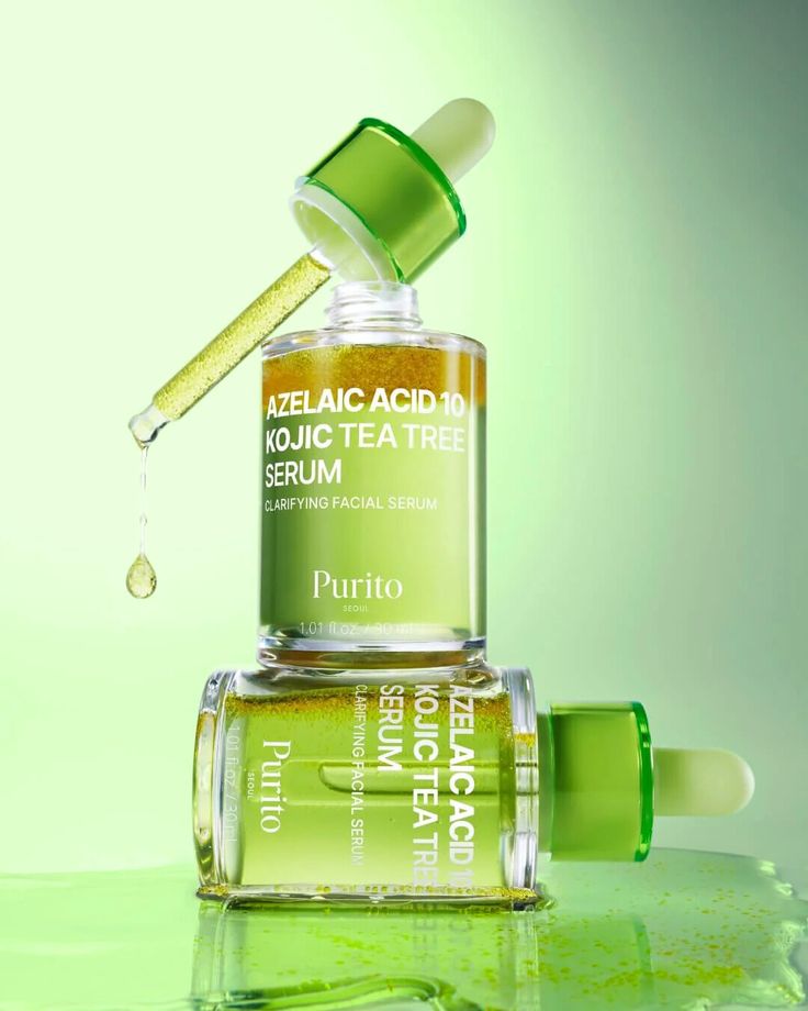 The PURITO SEOUL Azelaic Acid 10 Kojic Tea Tree Serum is a powerful, multi-action treatment specifically formulated for those battling persistent acne, post-inflammatory hyperpigmentation, and uneven skin texture. This serum combines the skin-refining properties of 10% Azelaic Acid with the brightening effects of Kojic Acid and the antibacterial benefits of Tea Tree, providing a comprehensive solution for a clearer, more radiant complexion.