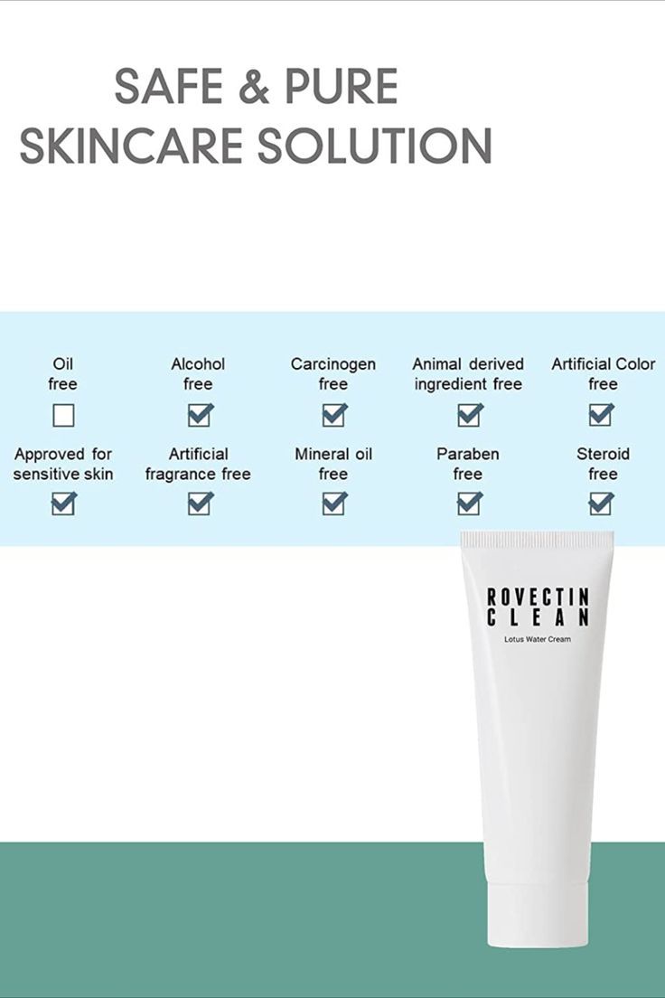 The ROVECTIN Clean Lotus Water Cream is a minimalist, high-performance moisturizer designed specifically for those with sensitive, irritated, or dehydrated skin. Unlike heavy, occlusive creams, this formula utilizes a “water-gel” texture that absorbs instantly without leaving a greasy residue.