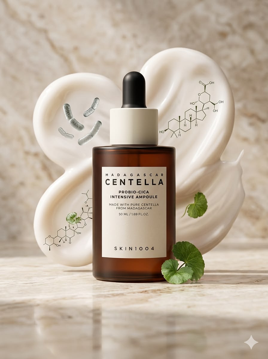 The SKIN1004 Madagascar Centella Probio-Cica Intensive Ampoule is an ultra-nourishing, reparative treatment designed to rebuild a compromised skin barrier. Combining the soothing power of Madagascar Centella Asiatica with a specialized vegan ProBio-Cica (centella fermented with TECA), this ampoule mimics the skin’s natural lipid structure to provide intensive care for dry, sensitive, or damaged complexions
